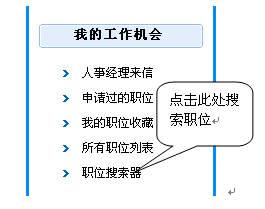 2) 進(jìn)入"個(gè)人管理中心",位于左側(cè)子欄目的"我的工作機(jī)會(huì)",點(diǎn)擊"職位搜索器"如下圖所示: